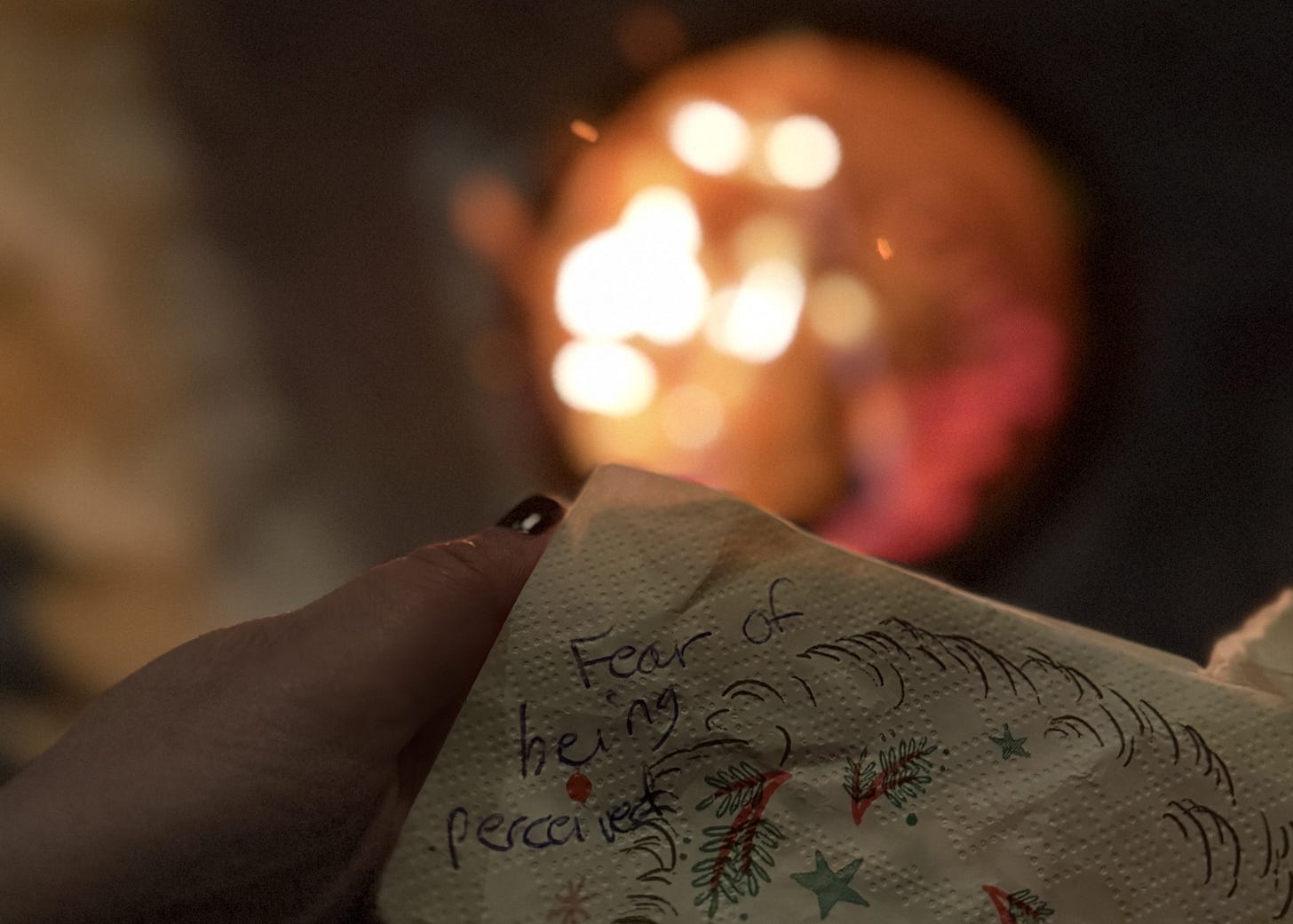 Don’t let the fact that I’ve pressed publish on this one fool you— it’s not that I’ve finally found the perfect thing to write about. But I’m trying to let go of the question. In a last-ditch show of New Year’s Eve motivation, I scribbled “fear of being perceived” on a vintage Santa napkin and threw it into a fire pit, determined to leave it behind in 2025. Onwards, new me, etc.